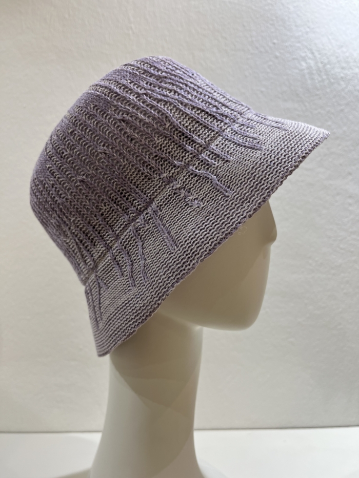 Der gestrickte Hut ist klein aufrollbar und strapazierfähig. Ein praktischer Reisebegleiter. Der Rand ist nur knackige 6cm breit. Der Hut verlangt praktisch nichts von Ihnen und Ihrer Garderobe. Er besticht durch seine Schlichtheit und durch das eingestrickte Muster.
