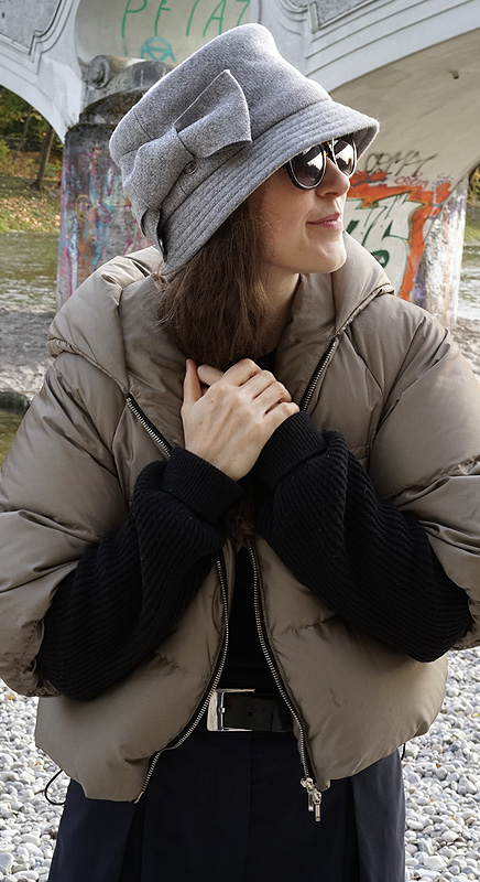 Julia, ist schön feminin und trotzdem knautschbar. Der feine Wollstoff hält Regen und Schnee stand. Wir haben Julia so verarbeitet, dass Sie die Größe individuell anpassen können. Einfach praktisch.