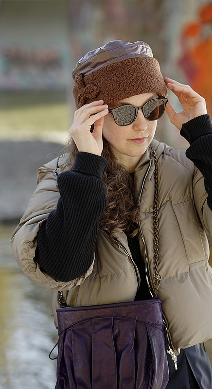 Onna. Sportliche Mütze aus Mikrofaser und Wollteddy.